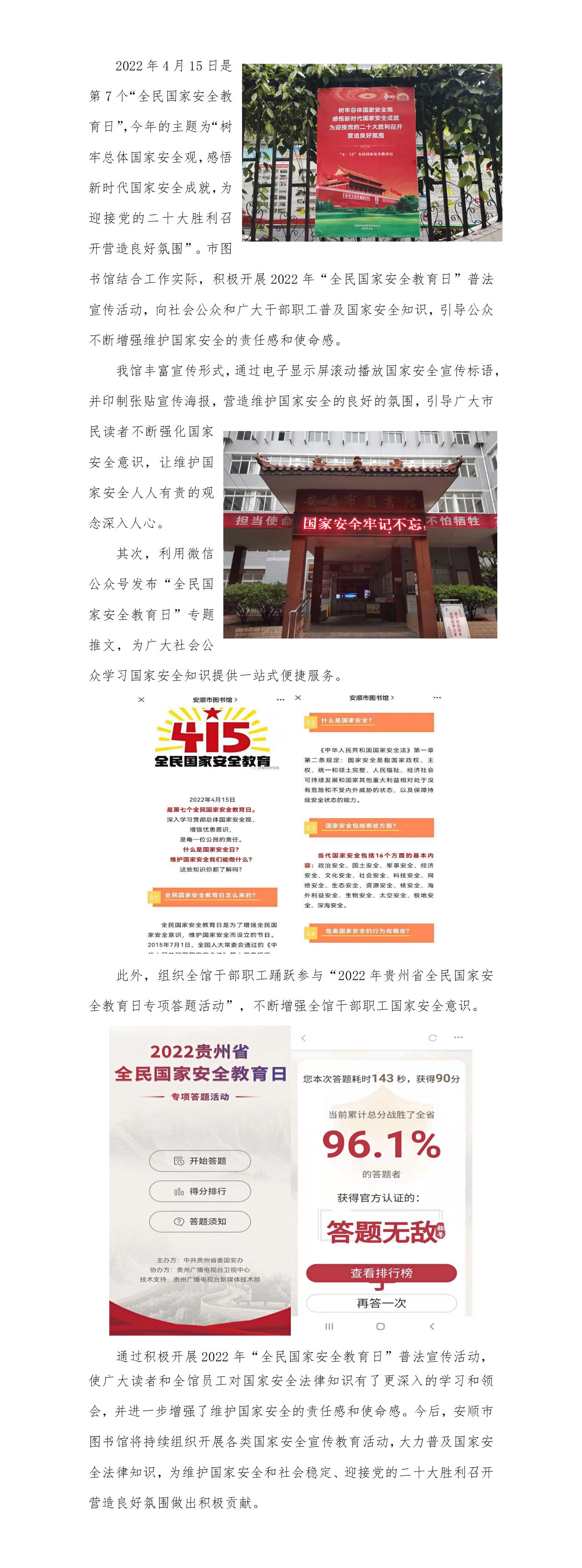 市图书馆积极开展2022年“全民国家安全教育日”普法宣传活动