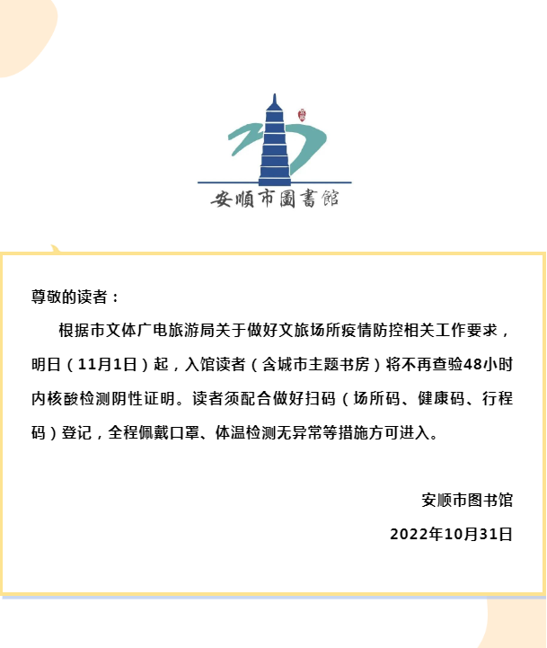 下一篇:通知 | 安顺市图书馆入馆需出示72小时内核...