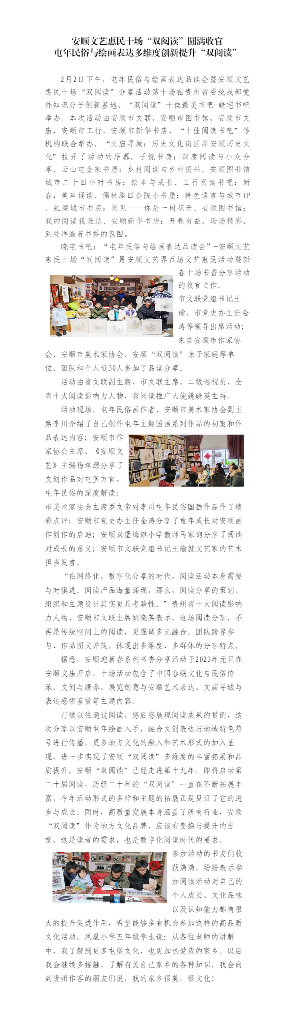 安顺文艺惠民十场“双阅读”圆满收官 屯年民俗与绘画表达多维度创新提升“双阅读”