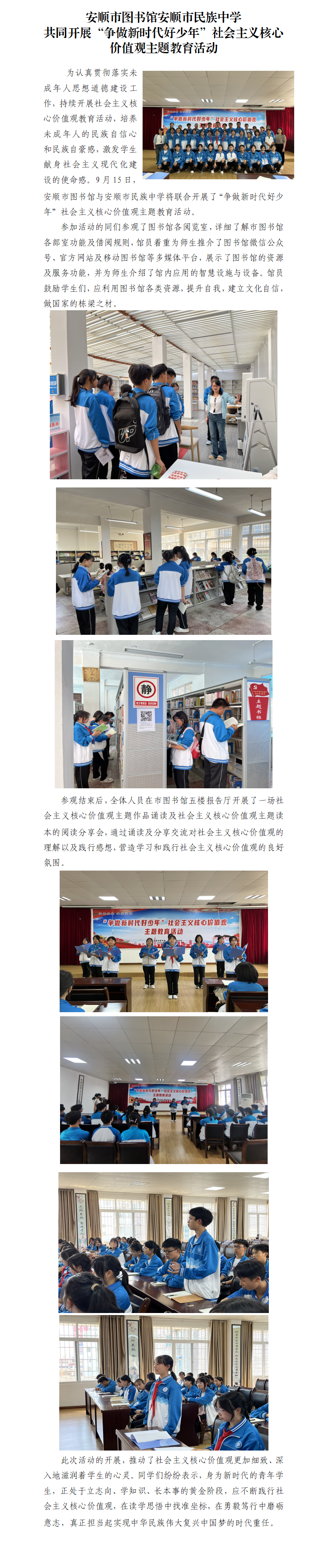 安顺市民族中学共同开展“争做新时代好少年”社会主义核心价值观主题教育活动