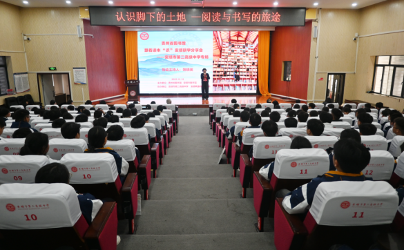 此次活动以“认识脚下的土地——阅读与书写的旅途”为主题,特邀安顺市二中校党委书记齐顾涛作为分享人,带领师生踏上一条贯通文字、乡土与心灵的诗意长路。活动在庄重而舒缓的氛围中启幕。中国作家协会会员、贵州省十大阅读影响力人物姚晓英女士担任主持人,她以温厚而深情的语调,回顾了此次活动一路走来的风景与收获,并向在场师生阐释本次活动更深一层的意涵——不止于读书,更是读一座城、读一类人、读一个自己。